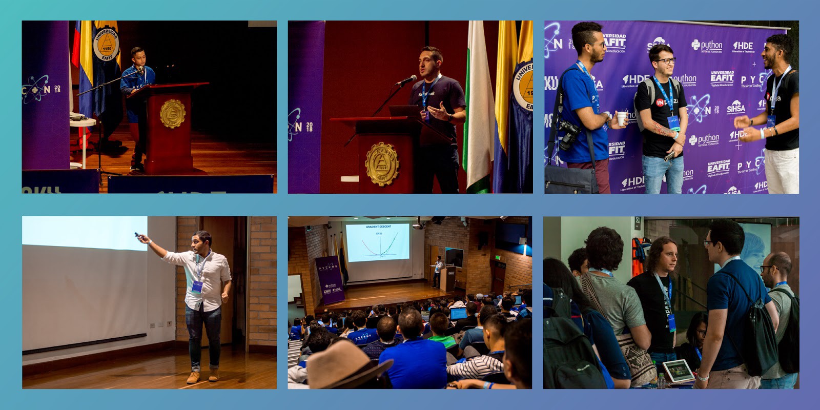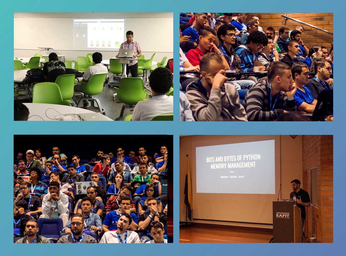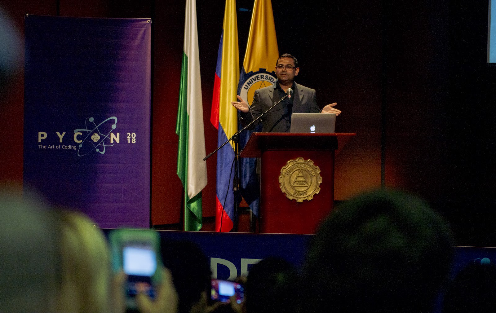 The big day finally came, it started with the words of Claudia María Zea Restrepo, EAFIT’s Vice-rector for Education. She mentioned that the university, through the Systems Engineering program, has inspired and has created many technological ecosystems for social transformation with the use of digital technologies; that’s why for EAFIT University, it was an honor to host an event such as PyCon Colombia 2018 that connects technological Innovation, strengthening Colombian ecosystems and integrate them into these international networks, generating learning and business opportunities.