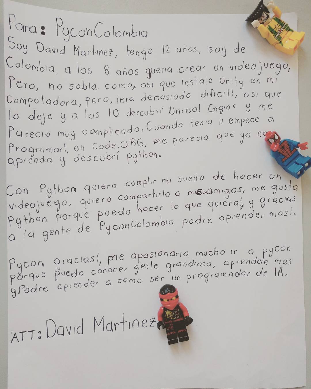 Letter written by David Martinez to PyCon Colombia organizers