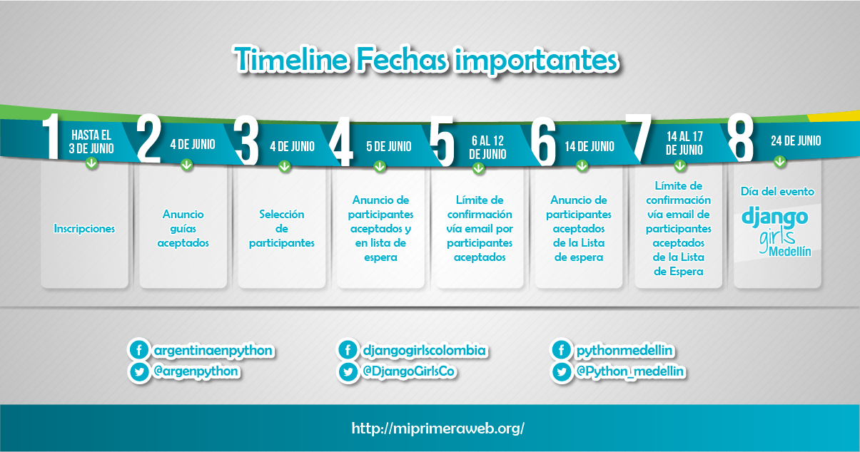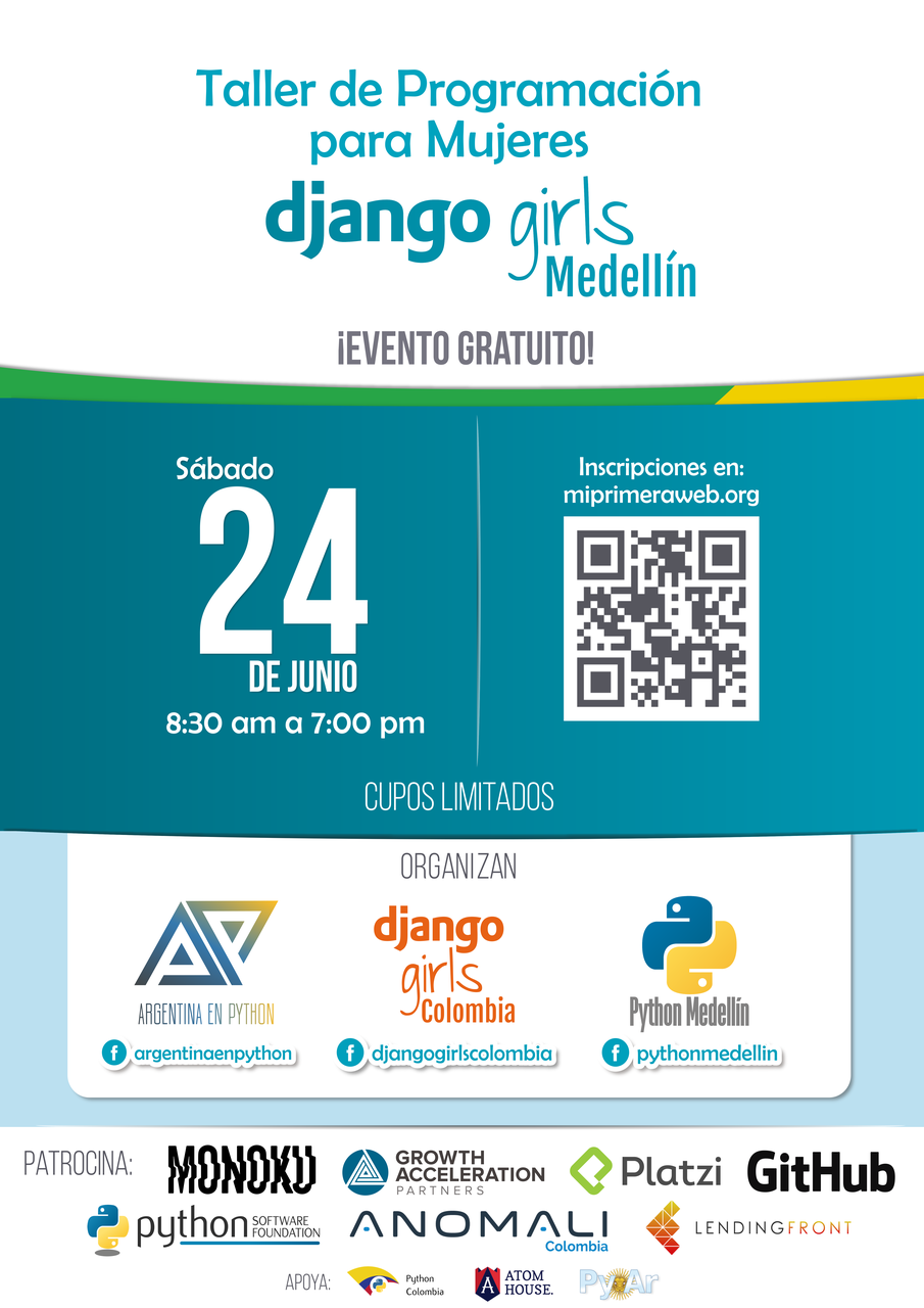 ¡Ayudanos con la difusión compartiendo esta página y comentando sobre el taller las redes sociales, tu universidad y entre tus amigos! Este evento forma parte de Django Girls y tiene su propio sitio web bajo esta marca: Django Girls Medellín