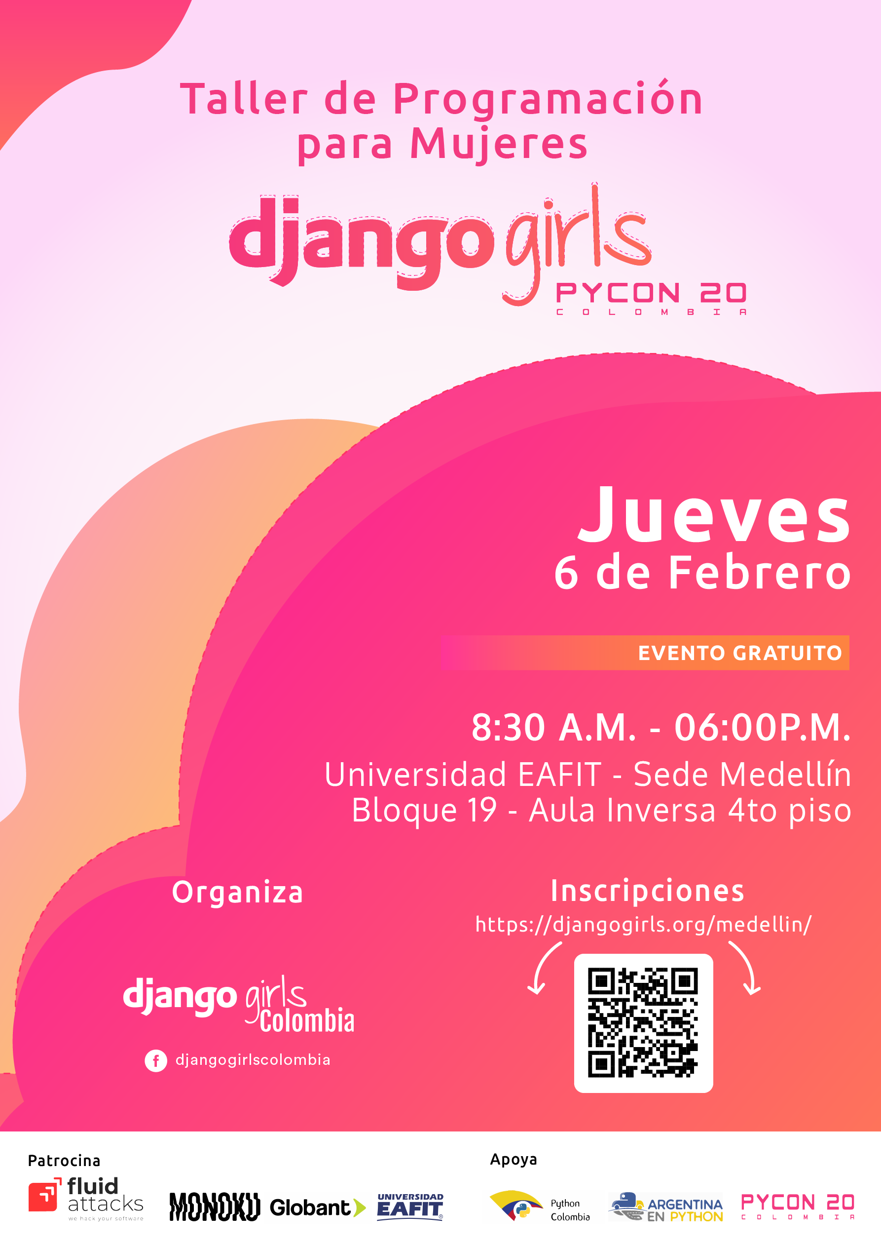 ¡Ayudanos con la difusión compartiendo esta página y comentando sobre el taller las redes sociales, tu universidad y entre tus amigos! Este evento forma parte de Django Girls y tiene su propio sitio web bajo esta marca: Django Girls Medellìn